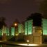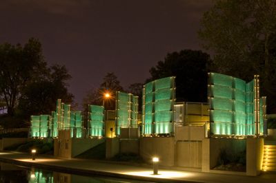 Le mémorial intègre du calcaire d'Indiana en teintes beige, gris et rose, complétant les panneaux de verre le long du Canal Central.