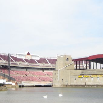 Le Nikon at Jones Beach Theater est un lieu en plein air situé sur le rivage avec des sièges permanents disposés en rangées ascendantes face à l'océan Atlantique. La scène et la zone du public forment une structure intégrée qui exploite la pente naturelle de la plage.