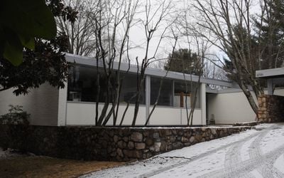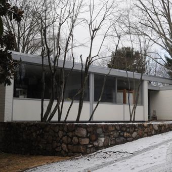 Construite en 1958, Marcel Breuer a conçu cette maison à ossature d'acier pour Seymour Krieger, procureur au Tribunal militaire international de Nuremberg.