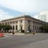 Le bureau de poste de Des Moines présente des murs en calcaire sur une base en granit, avec de hautes colonnes et de grandes fenêtres semi-circulaires.