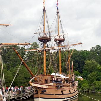 Le site de Jamestown présente des répliques de trois navires, un fort colonial reconstruit et un village amérindien le long du fleuve James.