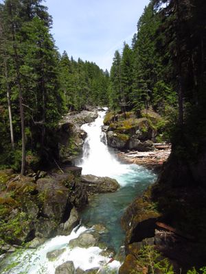 Silver Falls est une cascade du parc national Mount Rainier où la rivière Ohanapecosh dégringole sur environ 29 metres à travers plusieurs niveaux dans des bassins clairs. L'eau forme une succession de chutes façonnées par les formations rocheuses naturelles.