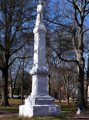 Le monument présente une statue en bronze d'un soldat confédéré de deux mètres sur un piédestal en granit de dix mètres de hauteur.