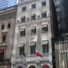La résidence en pierre de six étages présente des ouvertures voûtées au rez-de-chaussée, des pilastres cannelés aux deuxième et troisième niveaux.
