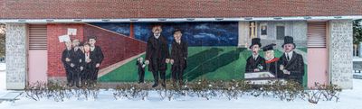 Une version de cette oeuvre a ete transformee en mosaique par l'artiste francais Gabriel Loire et montre les deux figures principales a une echelle surhumaine. Ce materiau confere a l'oeuvre une qualite differente et en fait une presence durable sur le campus.