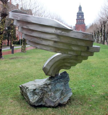 Woge auf Kyanit, sculpture by Volkmaar Haase at the Evangelisches Johannesstift Berlin, Germany