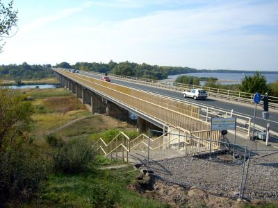 Mulde lake bridge at Pouch, road bridge over river Mulde closeby and east of village Pouch