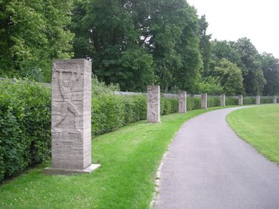 Winners steles, stelae erected for each year of the Olympic Games on the grounds of the Olympic Stadium in Berlin, Germany