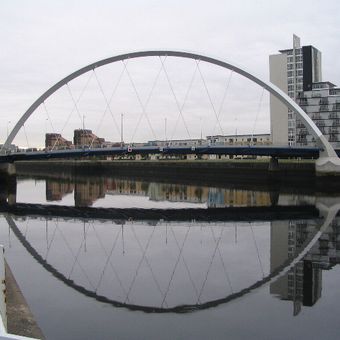 Le Clyde Arc est un pont routier qui assure la traversée du River Clyde à Glasgow en reliant Finnieston à Pacific Quay par un tablier légèrement incurvé. L'arc en acier s'élève au-dessus de la chaussée et soutient l'ouvrage par le haut, formant une silhouette visible sur le fleuve tandis que sa largeur offre de la place pour les véhicules, les bus, les pistes cyclables et les piétons.