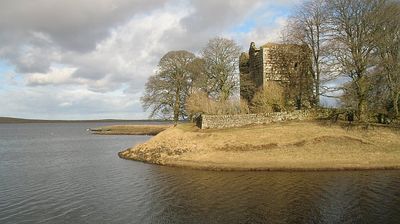 La structure représente l'architecture militaire médiévale écossaise avec son entrée surélevée et son escalier en colimaçon surplombant le réservoir Harperrig.