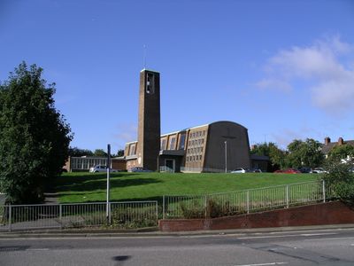 L'église originale de 1874 a été détruite pendant le bombardement de Coventry en 1940, menant à la construction de la structure actuelle en 1957.
