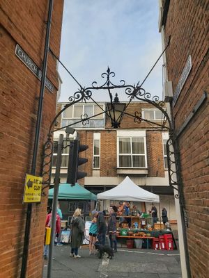 Overthrow And Lamp Bracket Attached To Numbers 15 And 16; Also Lamp, architectural structure in Farnham, Waverley, Surrey, UK