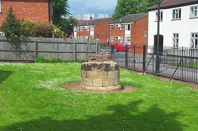 Base of pier at Lenton Priory Ruins, remains of building; base of the easterly pier of the ambulatory of the church of Lenton Priory at Lenton, Nottingham, England