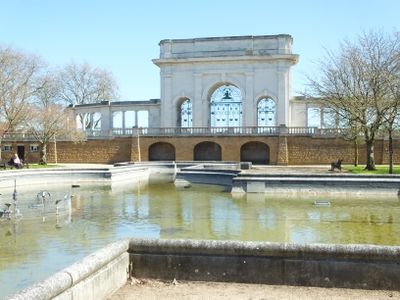 Ornamental Pond In Memorial Gardens, memorial in City of Nottingham, Nottinghamshire, UK