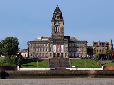 L'Hôtel de Ville de Wallasey est un bâtiment classé Grade II à Wallasey avec dix-sept travées dominant la rivière Mersey, distingué par de hautes fenêtres à guillotine à têtes arrondies au premier étage. La structure est couronnée d'une lanterne distinctive qui ajoute une dimension visuelle à la silhouette du bâtiment.