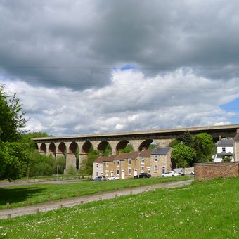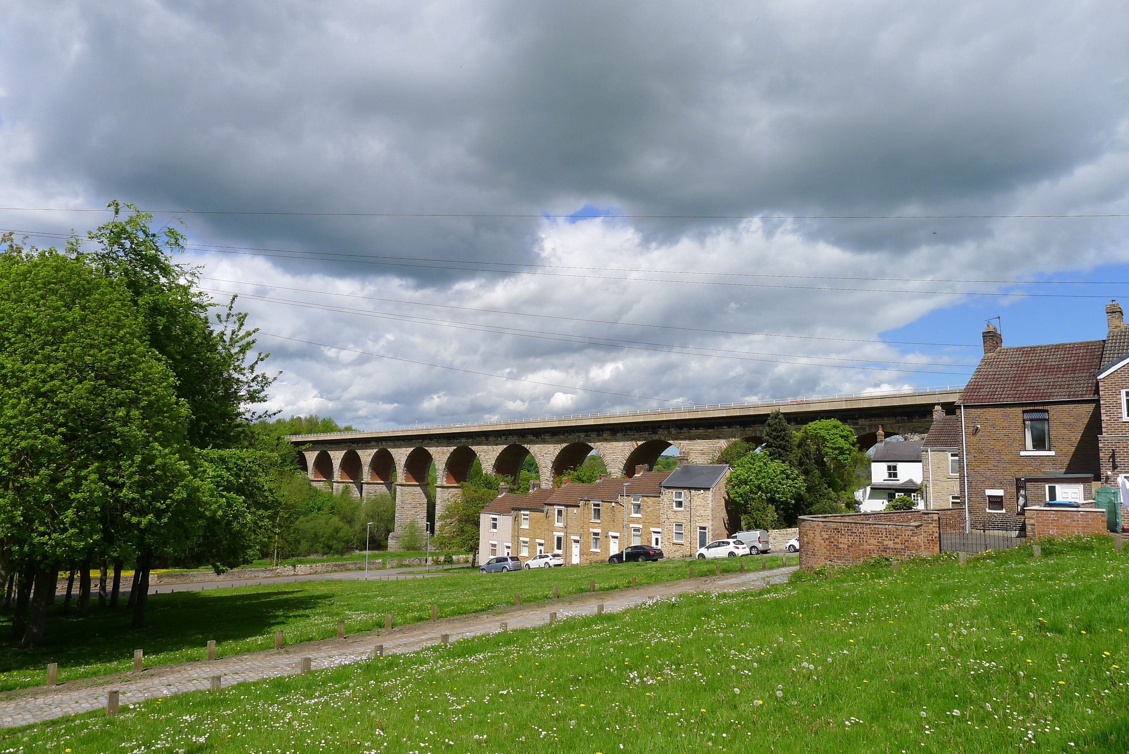 Newton Cap Railway Viaduct Over River Wear, railway viaduct in Bishop Auckland, County Durham, UK, converted in the 1990s to road use