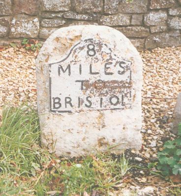 Milestone, nr Backwell Green; opp. Six Mile Cottage that stands by a wide entrance of a quarry road