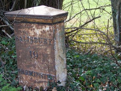 Milestone, 100m E jcn road to Norton Bavant 50m E of Langleys Gore