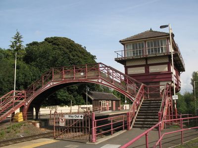 Footbridge at Haltwhistle railway station, station footbridge in Northumberland, UK