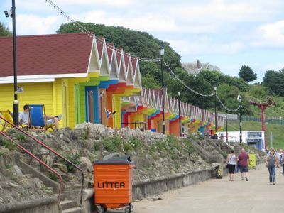 Les cabines de Scarborough sont des structures en bois colorées disposées en rangées régulières le long de South Cliff, offrant un abri et des vestiaires aux baigneurs. Elles s'étendent de la partie sud de South Bay vers le complexe Spa voisin.