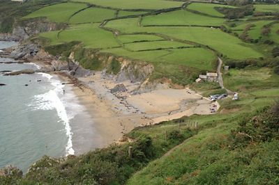 La section avant du navire Ewt 263, qui s'est scindé en deux près de Lizard Point lors d'une opération de remorquage en 1971, s'est échouée entre cette plage et Dodman Point.