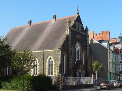 No.47 Portland Street, Grade II listed building in Ceredigion. At the end of the terrace, the Salem Chapel set back to left