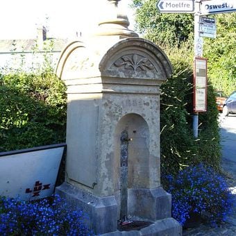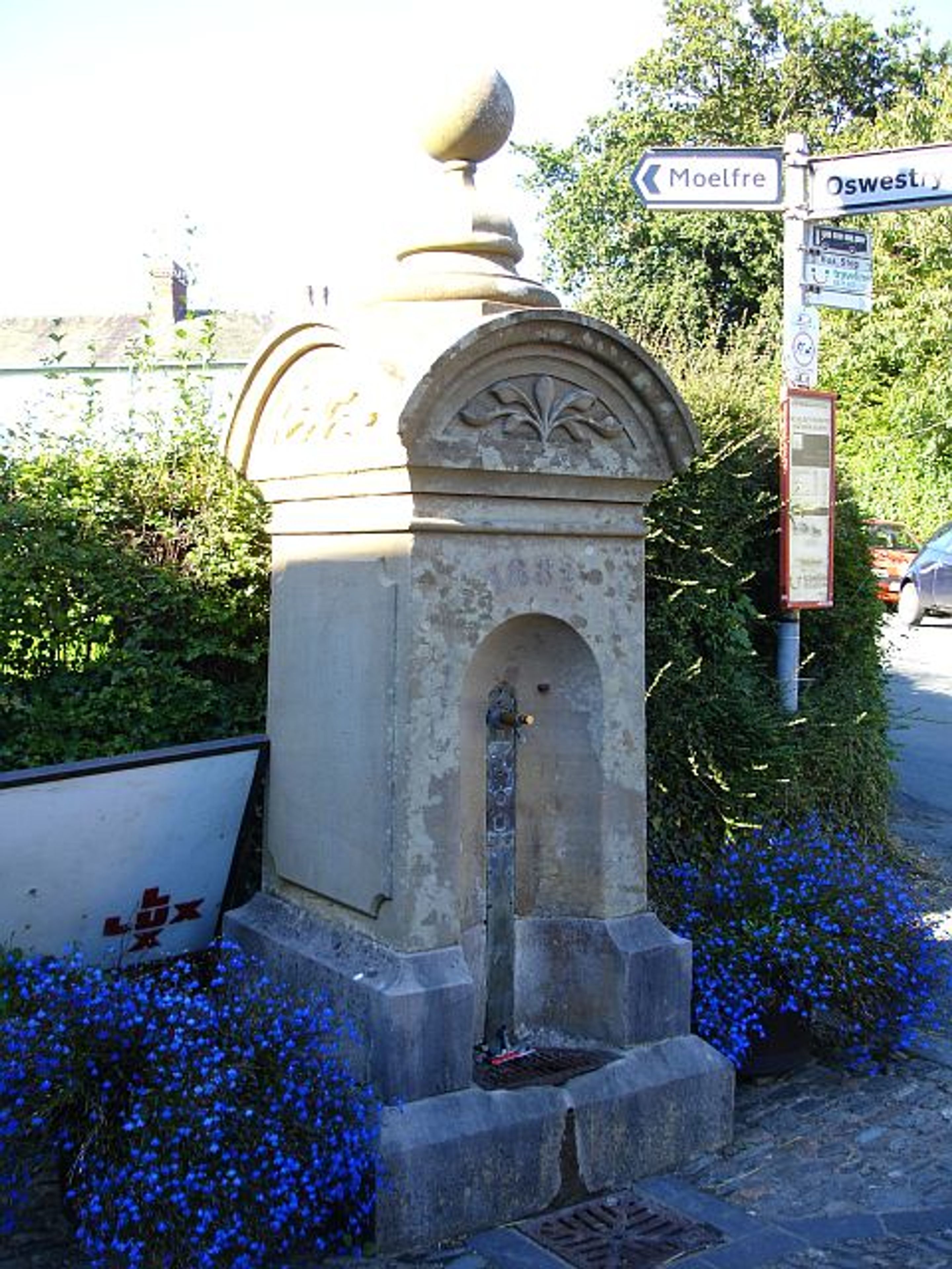 Drinking Fountain in Llansilin village, Grade II listed building in Llansilin. At a fork in the road at the west side of High Street in Llansilin village, opposite the church