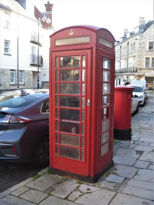 K6 Telephone Kiosk Outside No 19, High Street, K6 telephone box in Swanage, Purbeck, Dorset, UK