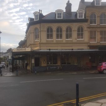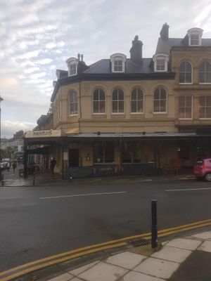 Fountains Bar & Cafe, Grade II listed building in Conwy County Borough. On corner of Mostyn Street and Llewelyn Avenue