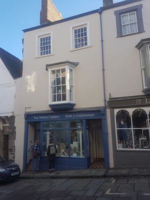 House and Oriel y Crochenwyr, Grade II listed building in Conwy. The NE end of High Street, in a block of commercial and residential buildings facing the street