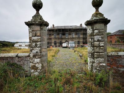 Gate piers and front garden walls to Calveley Hall, Grade II listed building in Handley, Cheshire, UK