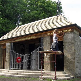 Stoneham WWI Shrine, Stone building with sloped tiled roof