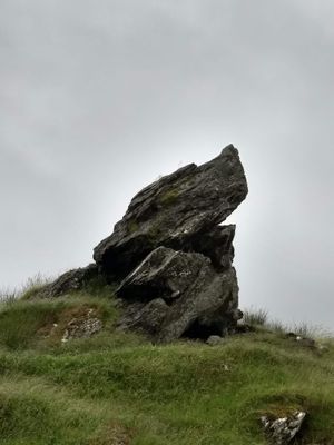 Le monticule herbeux contient de nombreux rochers, suscitant des débats sur leur origine naturelle ou leur placement intentionnel par des humains.