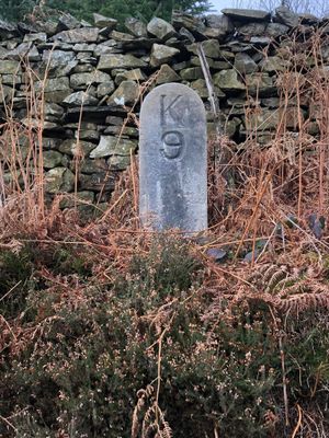 Milestone, beneath Gummer's How, just E of an entrance into the forestry, milestone in Staveley In Cartmel, South Lakeland, UK