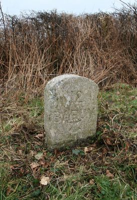 Milestone, 200m NE of Head Bridge, 30m up hill from fork with sign post