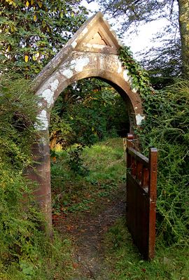 East gateway to St Michael and All Angels churchyard, gateway in Muncaster, Cumbria, UK