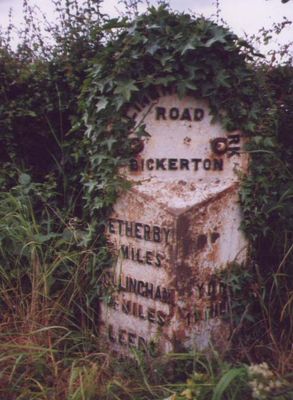 Milestone, between Bickerton & Walton, milestone in Bilton In Ainsty With Bickerton, Harrogate, UK