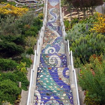 Les escaliers de la 16ème Avenue se composent de 163 marches recouvertes de panneaux de mosaïque montrant des créatures marines, des motifs célestes et des designs inspirés par la nature. Les carreaux colorés parcourent toute l'escalier, transformant un simple passage de quartier en une œuvre d'art que l'on traverse à pied.
