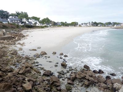 La plage de Ty Bihan s'étend sur 400 mètres le long du côté ouest de la Grande Plage, offrant des vues sur la baie de Quiberon.