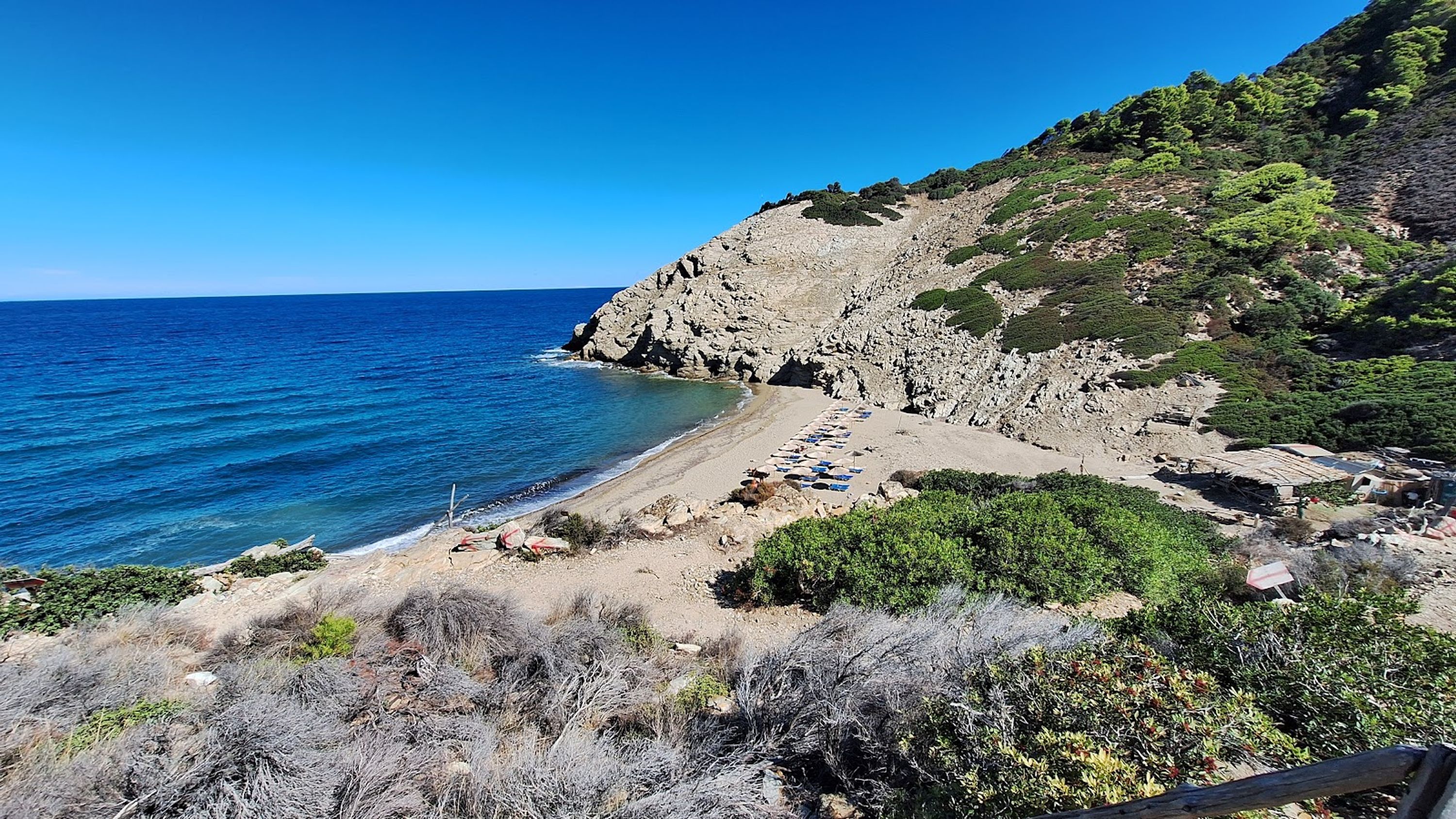 La plage se trouve près du monastère Moni Panagias Kounistras, un édifice du XVIIe siècle qui servait de centre spirituel local.