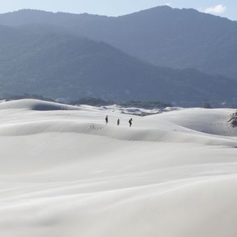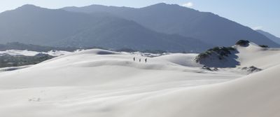 Les dunes de sable blanc s'étendent de l'Avenue das Rendeiras jusqu'à la plage de Joaquina, créant des formations naturelles sur la côte atlantique.