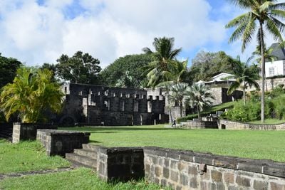 Les Ruines Historiques de Balaclava se dressent dans un parc tropical de 25 hectares contenant des structures en pierre et des éléments architecturaux coloniaux.