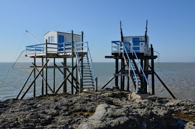 Carrelets de Saint-Palais-sur-Mer, Cabanes de pêche sur pilotis à Saint-Palais-sur-Mer, France.