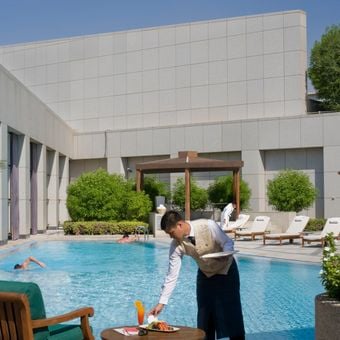 Le Kingdom Center est l'un des bâtiments les plus reconnaissables de Riyad et sert de symbole à la ville moderne. Les espaces communs de l'hôtel s'inspirent de références architecturales locales, et les menus reflètent les habitudes de la région en proposant des mocktails à la place des boissons alcoolisées.