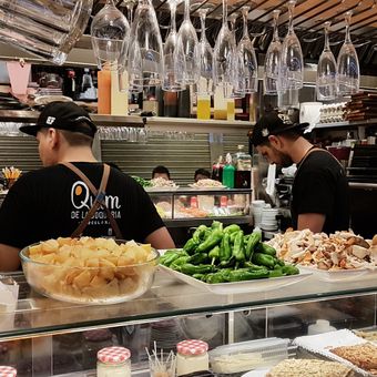 L'établissement incarne les habitudes alimentaires locales par ses tapas, fruits de mer et plats aux oeufs servis à un comptoir partagé. La cuisine ouverte et la sélection quotidienne d'ingrédients frais provenant des étals voisins montrent comment les Barcelonais apprécient la qualité et la simplicité à table.
