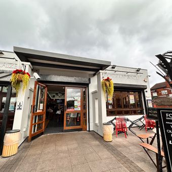 The Bishop Blaize est un pub et restaurant près du stade Old Trafford avec des zones de sièges surélevées et une terrasse extérieure. Il fonctionne comme un établissement Wetherspoon offrant nourriture et boissons dans une disposition à plan ouvert.