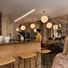 Sanjo est un restaurant de ramen japonais situé dans le 1er arrondissement de Paris avec un design moderne et compact. L'espace affiche des carreaux blancs encadrant la cuisine ouverte, des murs en pierre apparente et de grandes fenêtres donnant sur la rue, créant un espace de repas lumineux et aéré.