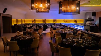 Le restaurant dispose d'une capacité de 330 couverts, avec un aménagement contemporain et un système d'éclairage sophistiqué dans ses espaces de restauration.