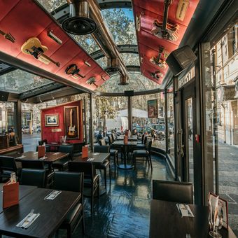 Hard Rock Cafe Rome est un restaurant américain dans un bâtiment important de Via Veneto, avec des souvenirs musicaux exposés sur plusieurs étages. L'espace combine des zones de restauration avec des collections étendues d'artefacts de la musique.