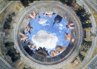 La Camera degli Sposi présente des fresques au plafond d'Andrea Mantegna, représentant les membres de la famille Gonzague dans un style Renaissance réaliste.